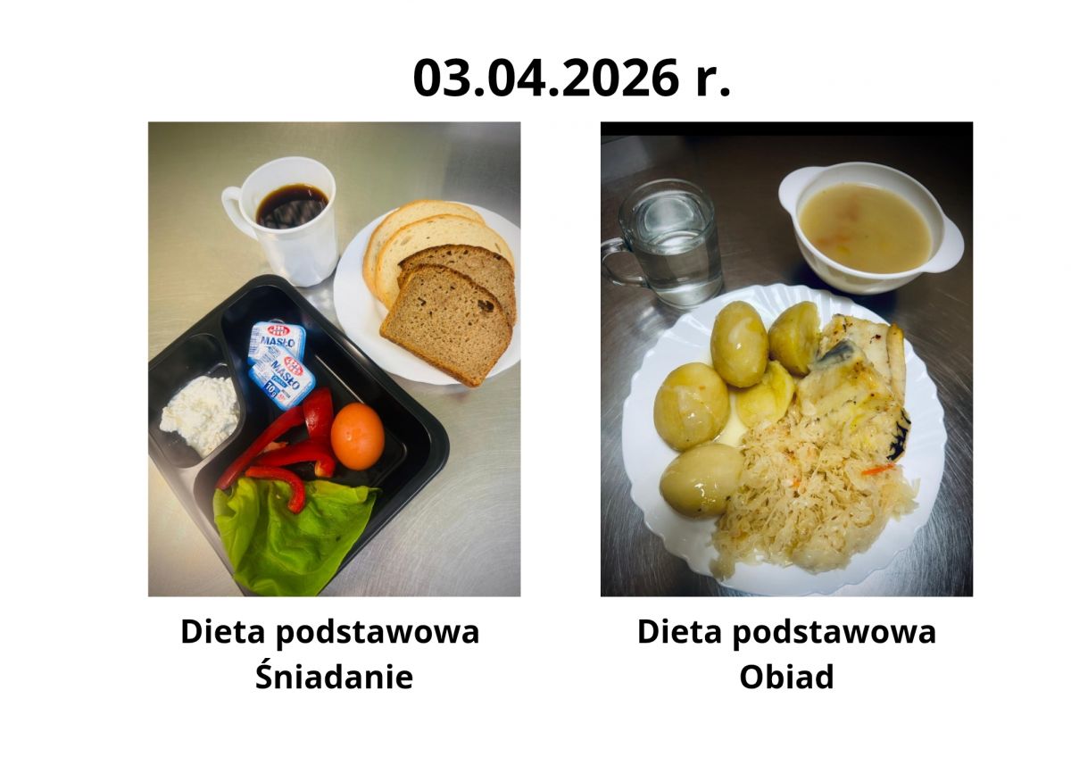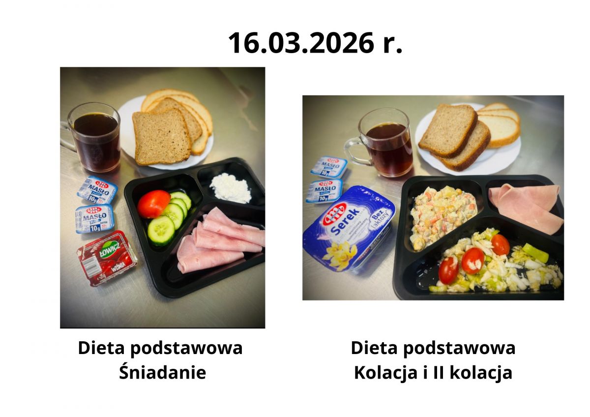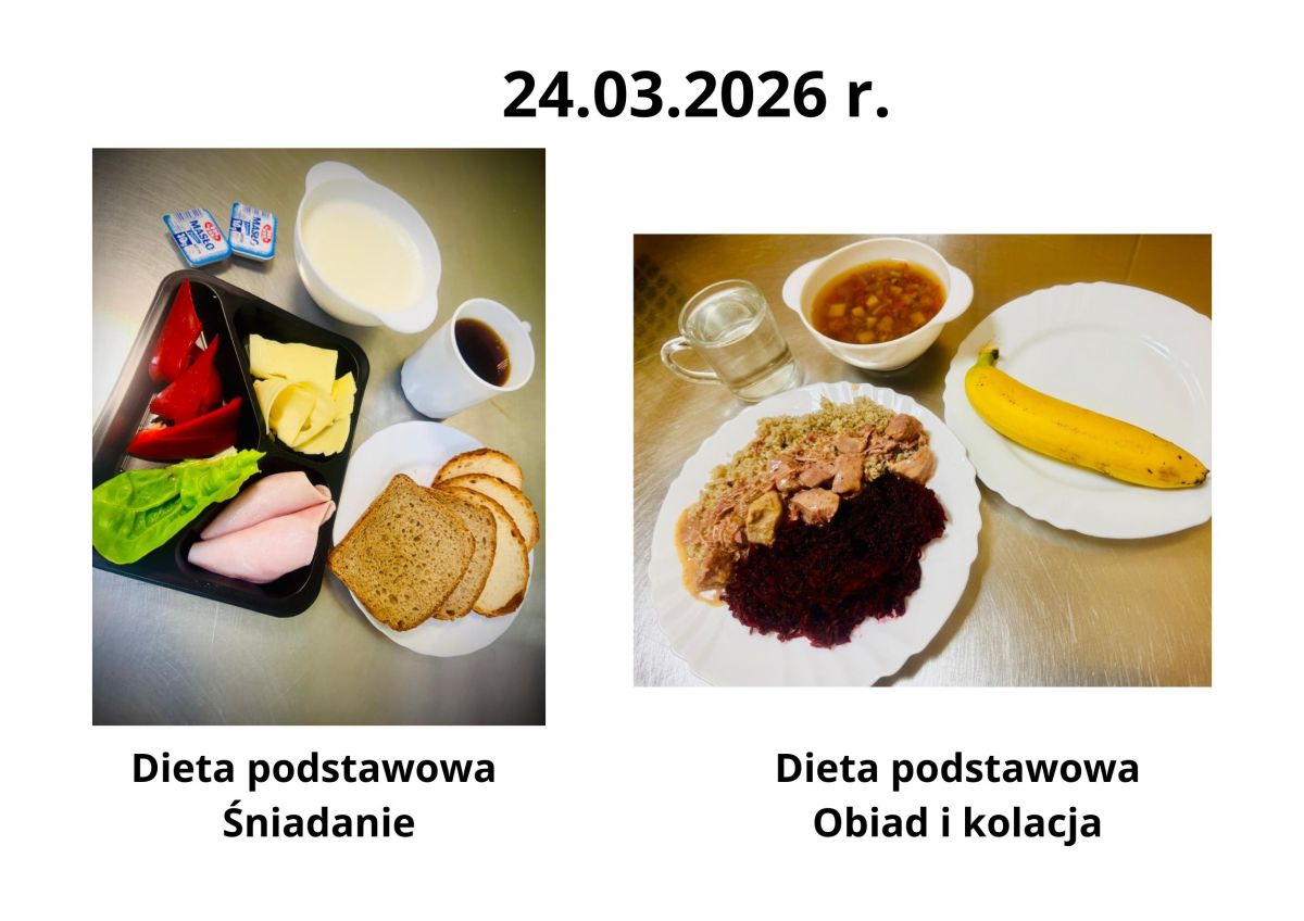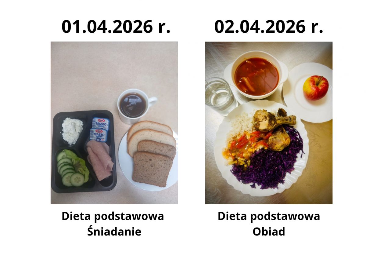 Poniżej publikujemy aktualne jadłospisy dla pacjentów. Menu przygotowywane jest zgodnie z obowiązującymi normami żywienia oraz zaleceniami dietetycznymi i podlega regularnej aktualizacji.
