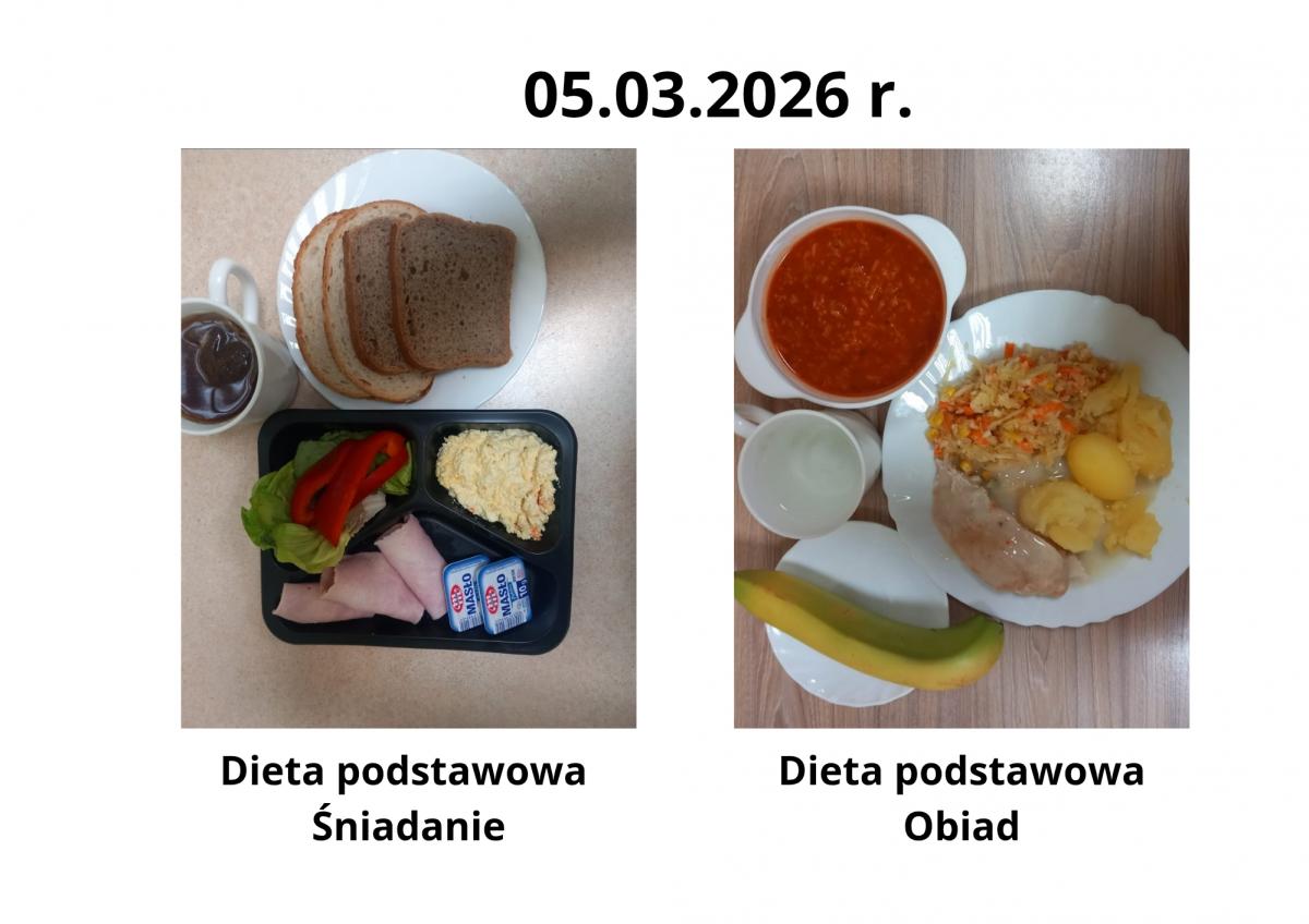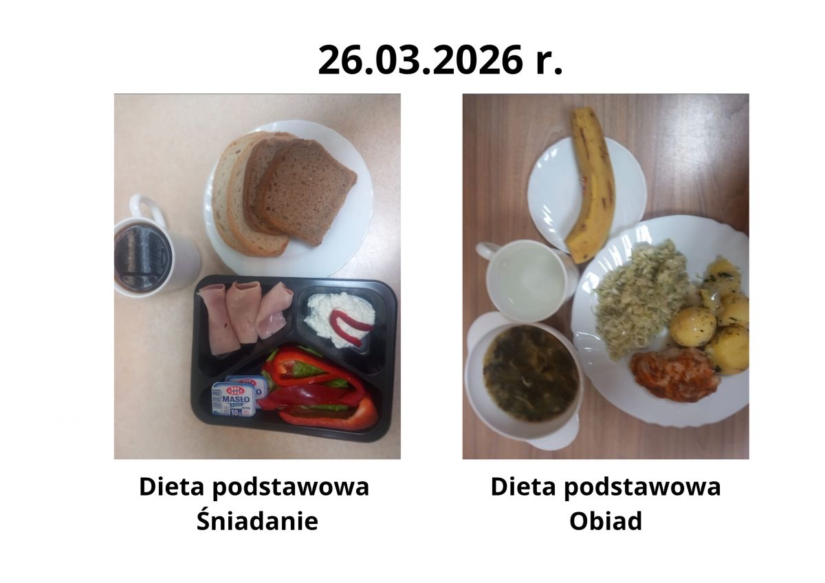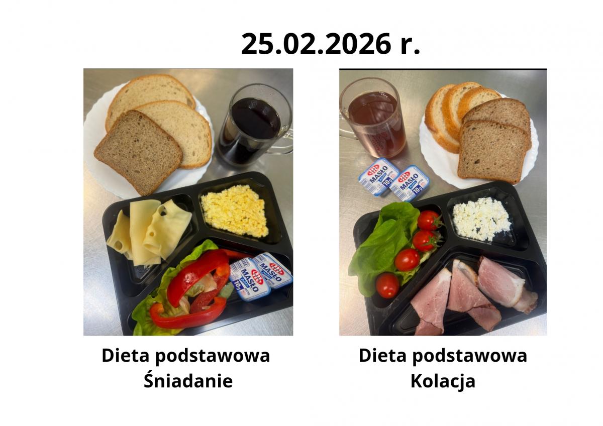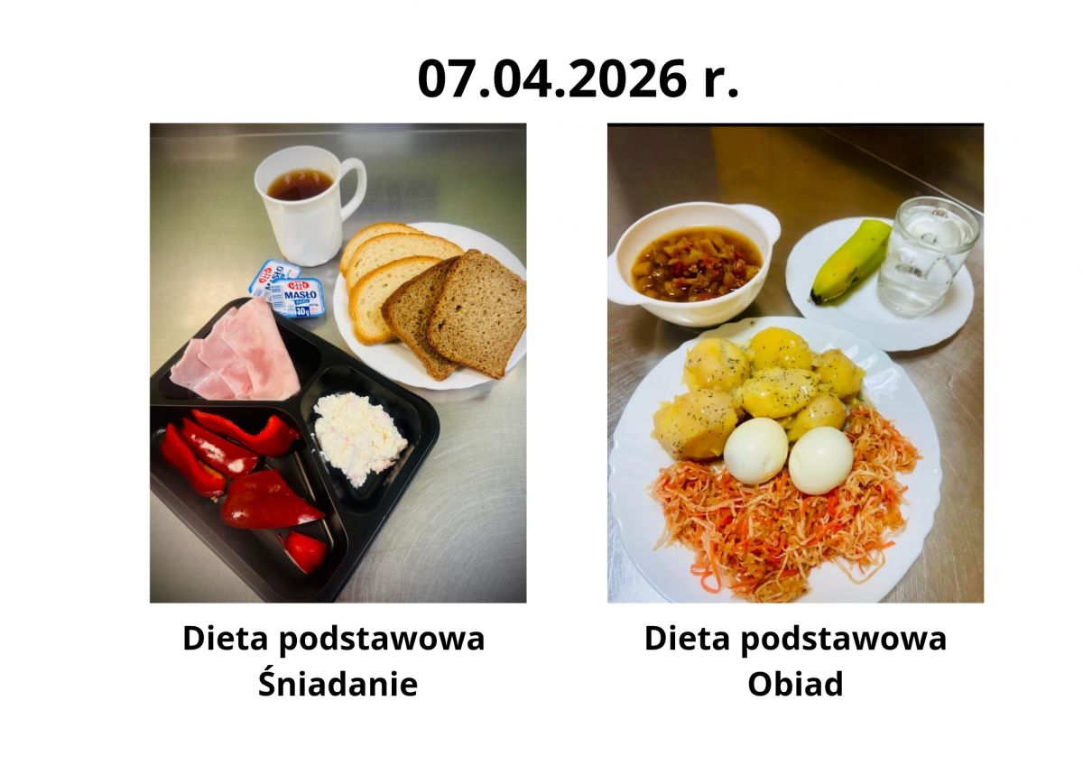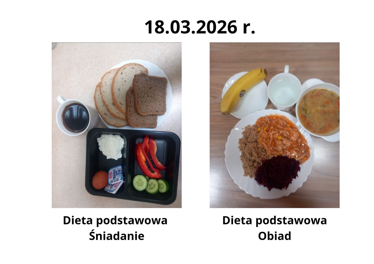 Poniżej publikujemy aktualne jadłospisy dla pacjentów. Menu przygotowywane jest zgodnie z obowiązującymi normami żywienia oraz zaleceniami dietetycznymi i podlega regularnej aktualizacji.