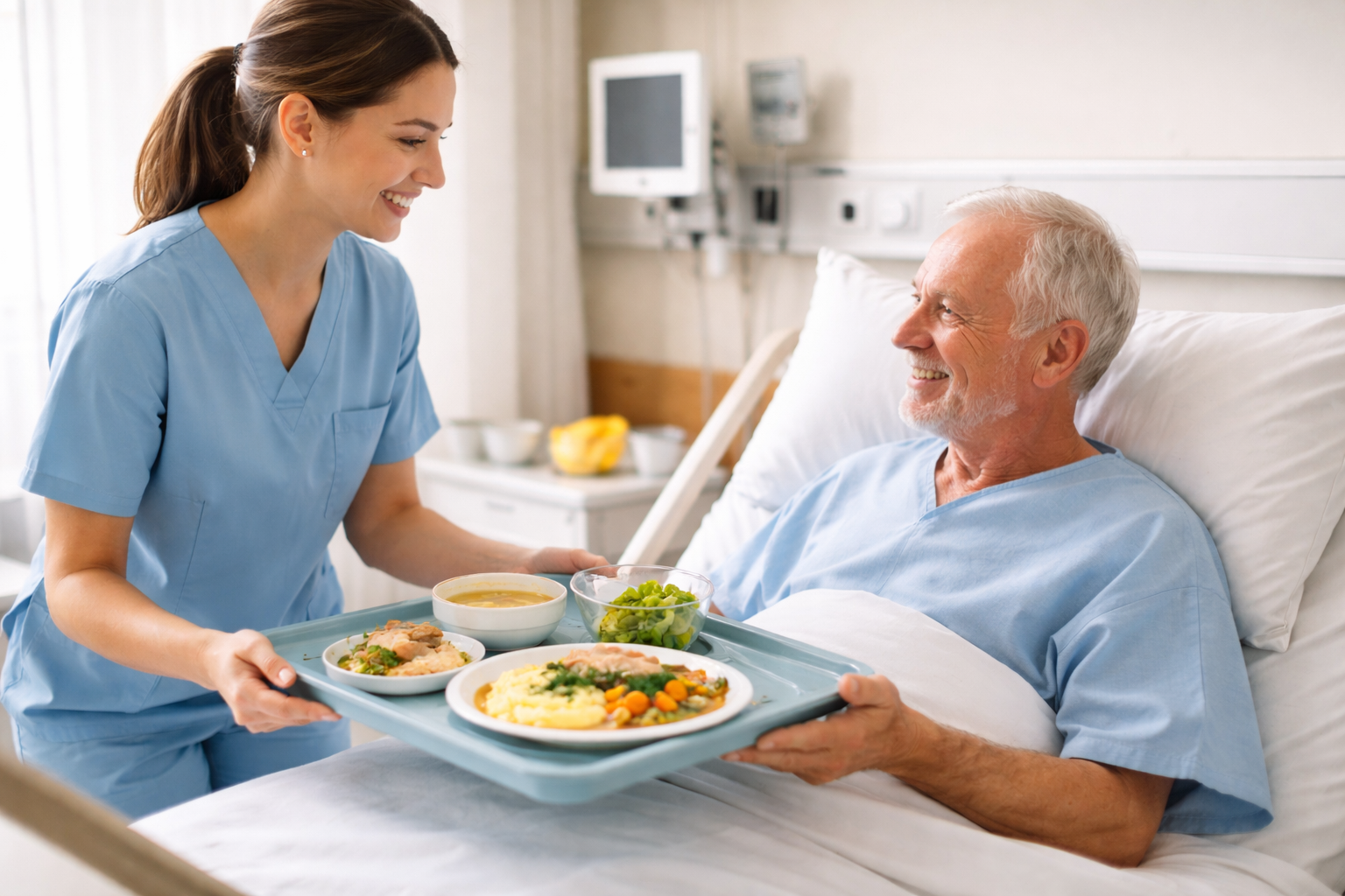 Od 1 stycznia 2026 r. w Polsce obowiązuje nowy standard żywienia pacjentów w szpitalach. SP ZOZ w Szamotułach od początku dostosowuje się do tych wymagań, zapewniając posiłki zgodne z aktualnymi normami żywienia i zaleceniami dietetycznymi. Jednocześnie stale dążymy do podnoszenia standardów żywienia — wcześniej uczestniczyliśmy w rządowych programach takich jak „Dieta Mamy” oraz „Dobry Posiłek”, których celem była poprawa jakości żywienia pacjentów.
